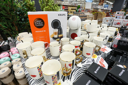 Sunt galerii foto cu o serie de sortimente de cafea, ceaiuri de toate felurile, produse marca proprie Auchan, dar şi accesorii: espressoare, căni, lapte pentru cafea.