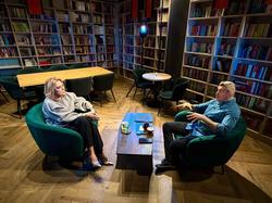 L-am găsit acasă la el, la Ploieşti, oraşul unde s-a născut şi trăieşte şi unde, de ceva timp, a reuşit să construiască un teatru şi o bibliotecă devenită publică, în jurul cărora începe să se consolideze o comunitate."